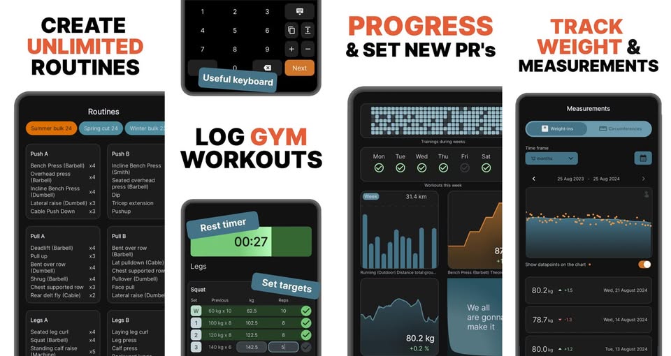 U praksi, Strive nudi sve što treba za ozbiljno praćenje treninga: neograničen broj rutina i treninga, detaljne grafove napretka (osobni rekordi, napredak po vježbama i mišićnim skupinama), setove za zagrijavanje, mjerač pauza između serija te rad bez internetske veze. Tu su i sigurnosne kopije podataka te solidne mogućnosti prilagodbe sučelja, posebno početnog zaslona.