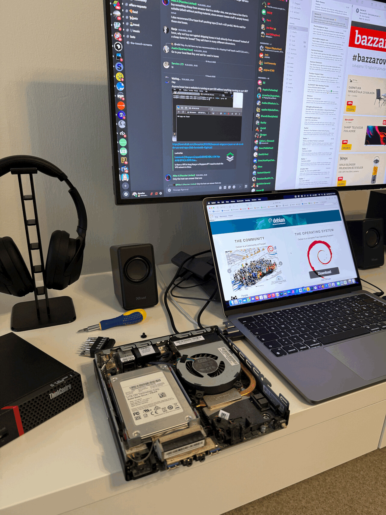 Ovaj moj hepek je ThinkCentre M920 Tiny sa Intel i5 6500T, 16GB RAM, 500GB NVMe i 128GB SSD SATA, a vrti se uz Debian + CasaOS.
