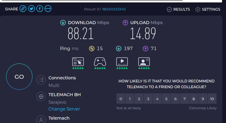 (Ovo je mjereno preko WiFi i nisam spajao kabal direkt u router jer bi brzina bila onako kako i piše u paketu koji sam uzeo - sigurno).