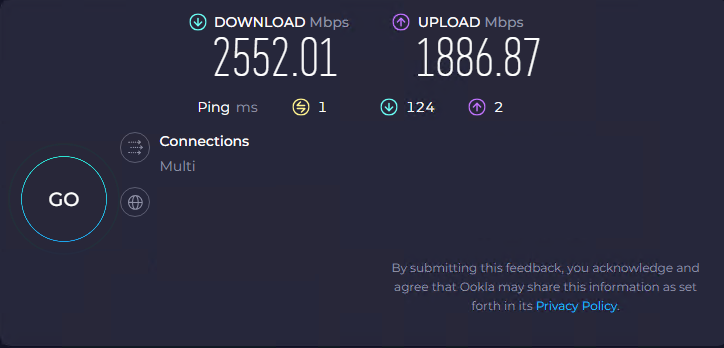 I preko telekoma FIBERNET imam 2.5 gige za download i upload, prezadovoljan sam. (S obzirom da ne živim u gradu ni blizu njega)