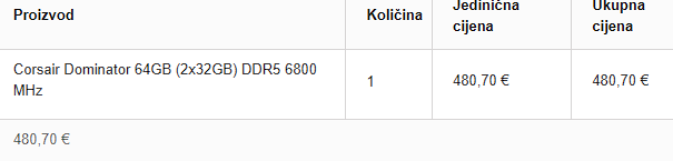 Moram ovo pokazati, ovo je cijena ovog RAM-a 14.10.2025.(na fotki ispod), cijena ovog RAM-a prije par dana nego što se rasprodalo, bilo je 1300 eura…. za ne povjerovati
