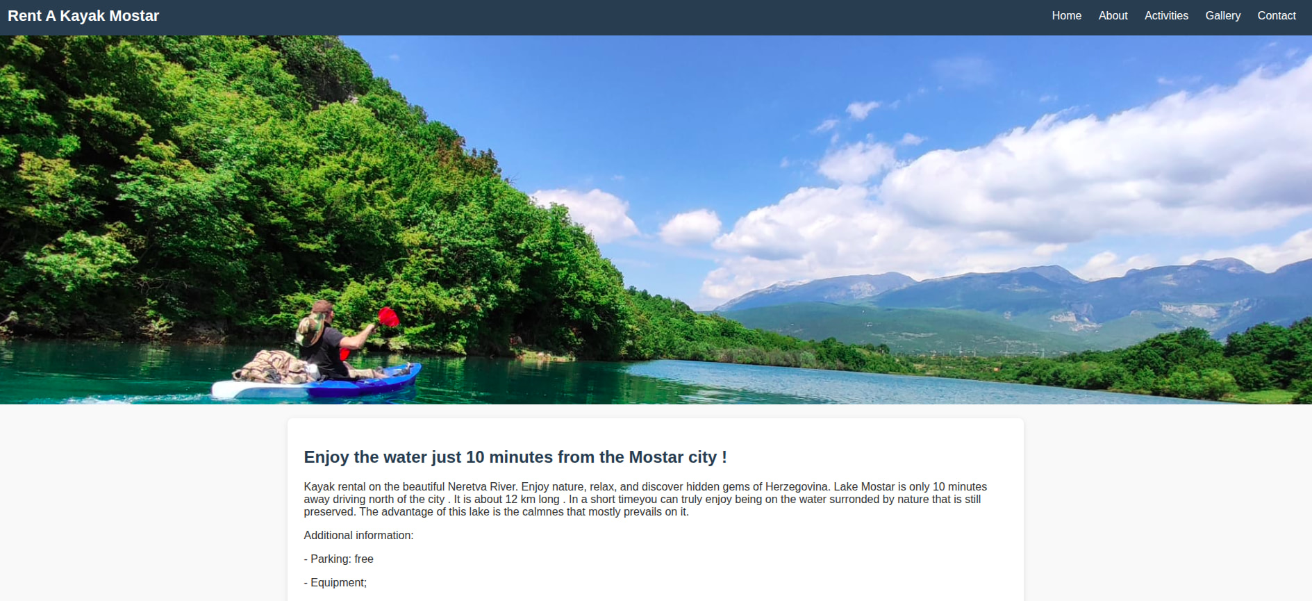 Rentanje kajaka u Mostaru (VanillaJS, HTML5, CSS3, responzivan dizajn i ugrađenim Google maps)